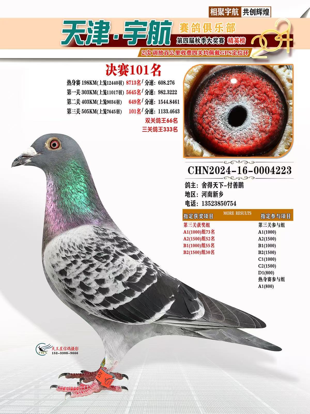 平辈鸽鸽王和冠军多羽,该路鸽是速度和耐力的完美结合,