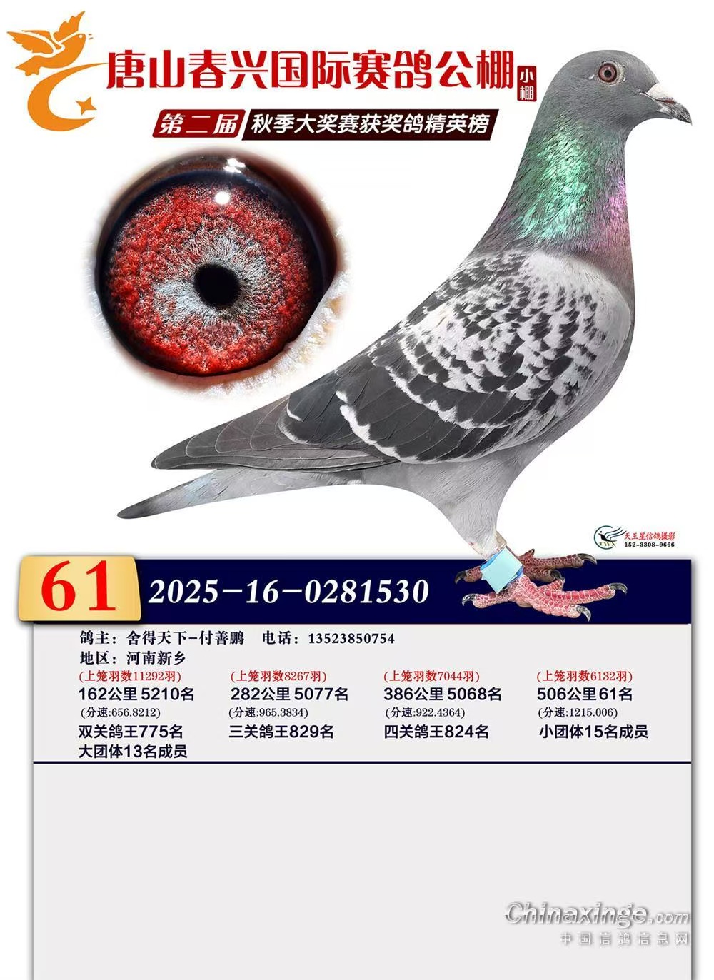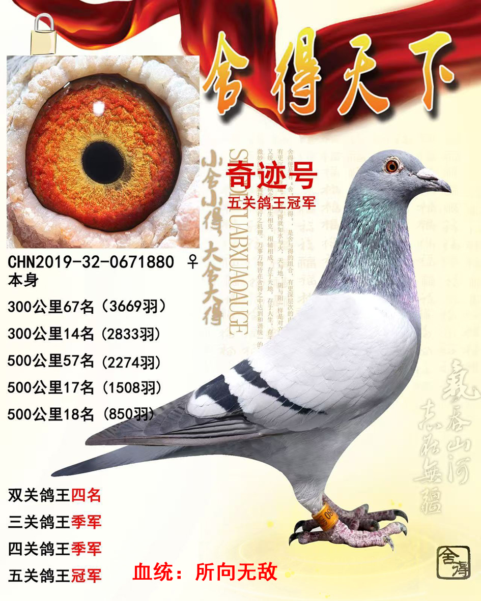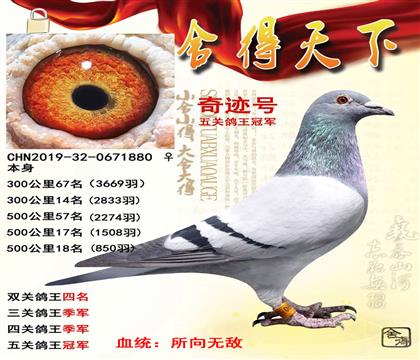 平辈鸽鸽王和冠军多羽,该路鸽是速度和耐力的完美结合,
