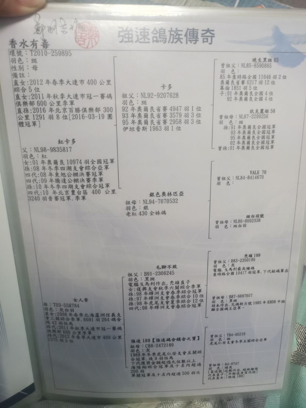 该配对一共5羽,均全部超级发挥,成绩众多!不一一列举!重点推荐