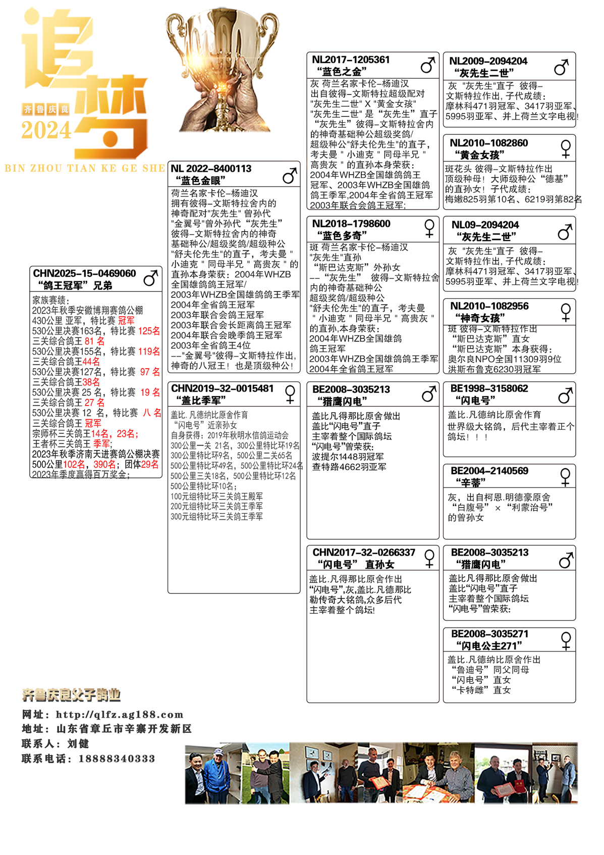 刘总你好!给报喜,我引进你的2016-32-0014055灰雄盖比闪电号近亲。它的直子2020-01-0840803灰。在2020年秋北京国信达公棚获得300公里冠军,500公里20名,双关鸽王,三关鸽王!通指。感谢您的支持!感谢您的优秀种鸽。