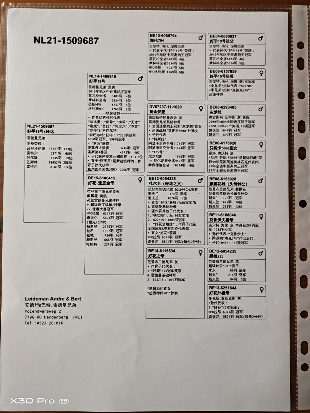 | 1623767 | 范登布克好红号全兄弟直子(镇棚种赛鸽) | ¥3000元 | 0次 |