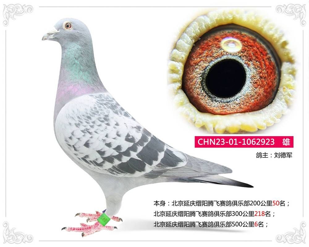 CHN23-01-1062923 雄 本身:北京延庆缙阳腾飞赛鸽俱乐部200公里50名;北京延庆缙阳腾飞赛鸽俱乐部300公里218名;北京延庆缙阳腾飞赛鸽俱乐部500公里6名;鸽主:刘德军 "咨询电话: 13601192027 白宇 (微信同号)运输方式:快递60/羽【新疆西藏不包括】、长途车100元【不论羽数】、飞机400元 注:新疆最近发不了!!!!!勿拍!!!"