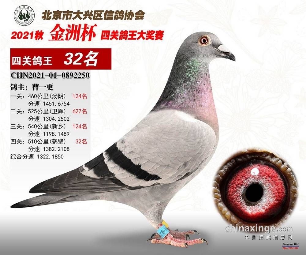 北京大兴鸽会“金洲杯”特比环第四关510公里32名;
