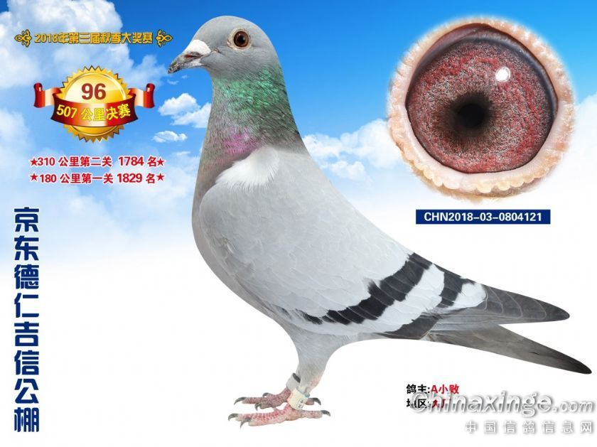 CHN18-03-0804121 雌 本身:京东德仁吉信公棚300公里预赛1784名;京东德仁吉信公棚500公里决赛96名;鸽主:小败 "咨询电话: 13601192027 白宇 (微信同号)运输方式:快递60/羽【新疆西藏不包括】、长途车100元【不论羽数】、飞机400元 注:新疆最近发不了!!!!!勿拍!!!"