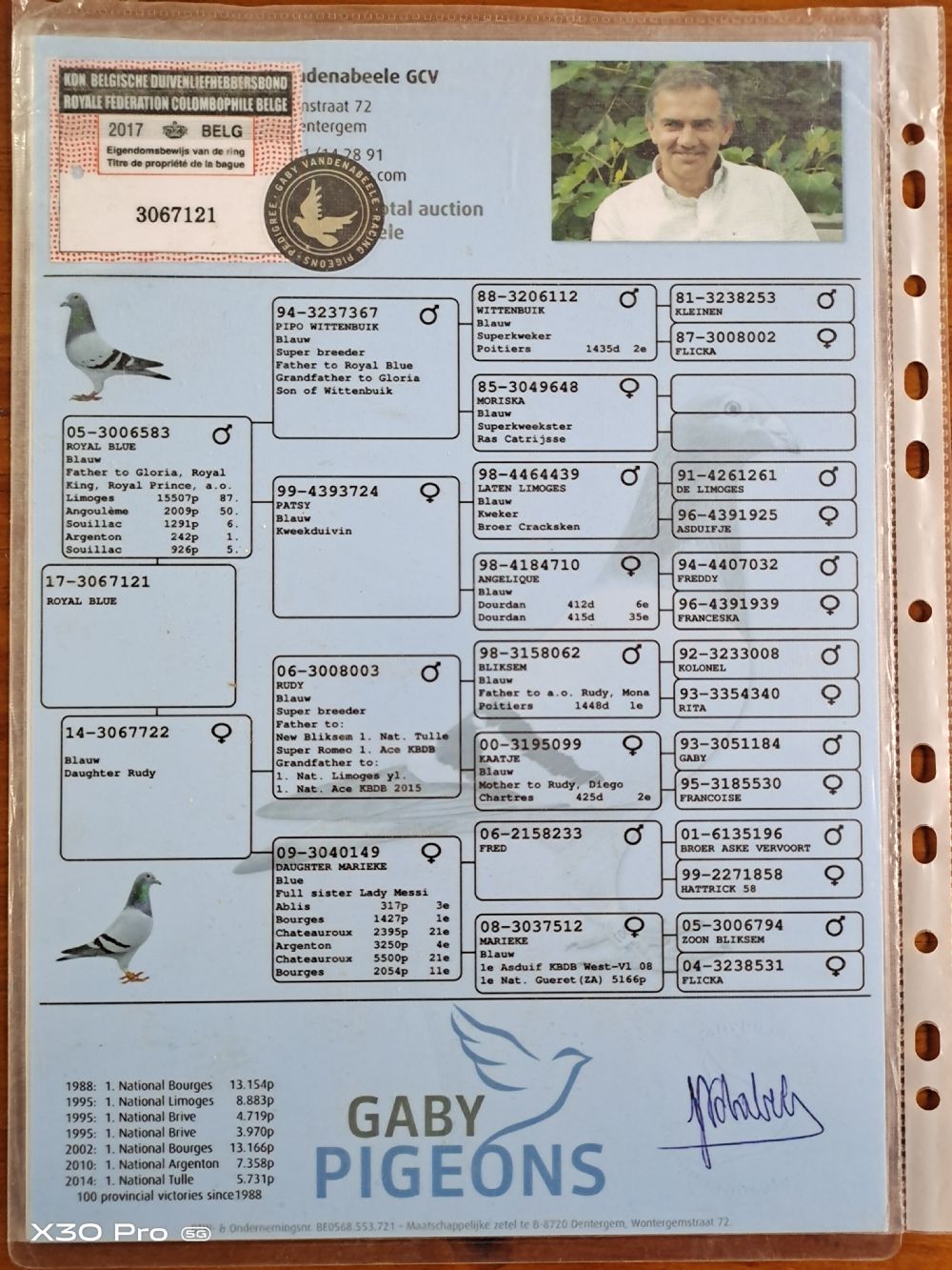 | 1623767 | 范登布克好红号全兄弟直子(镇棚种赛鸽) | ¥3000元 | 0次 |