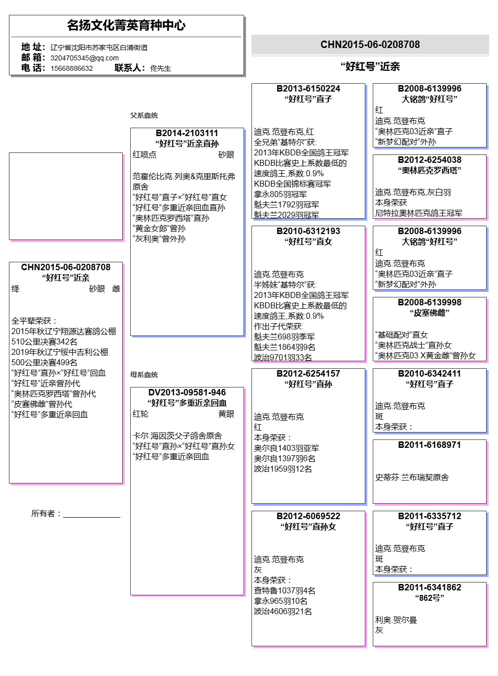 所有拍卖鸽全部血统真实!!个人鉴鸽观点不一,飞不飞天上见.血统成绩第一