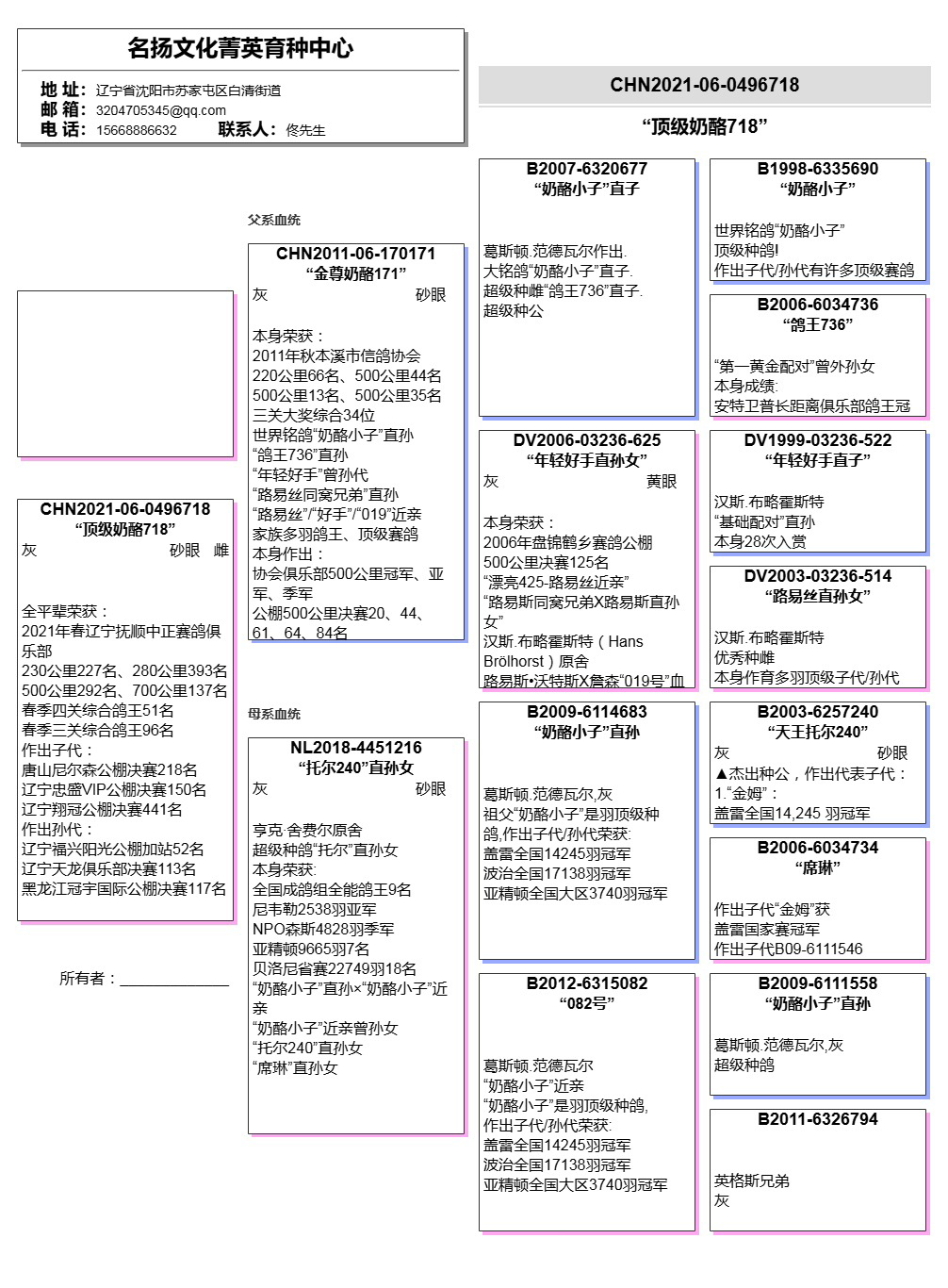 所有拍卖鸽全部血统真实!!个人鉴鸽观点不一,飞不飞天上见.血统成绩第一