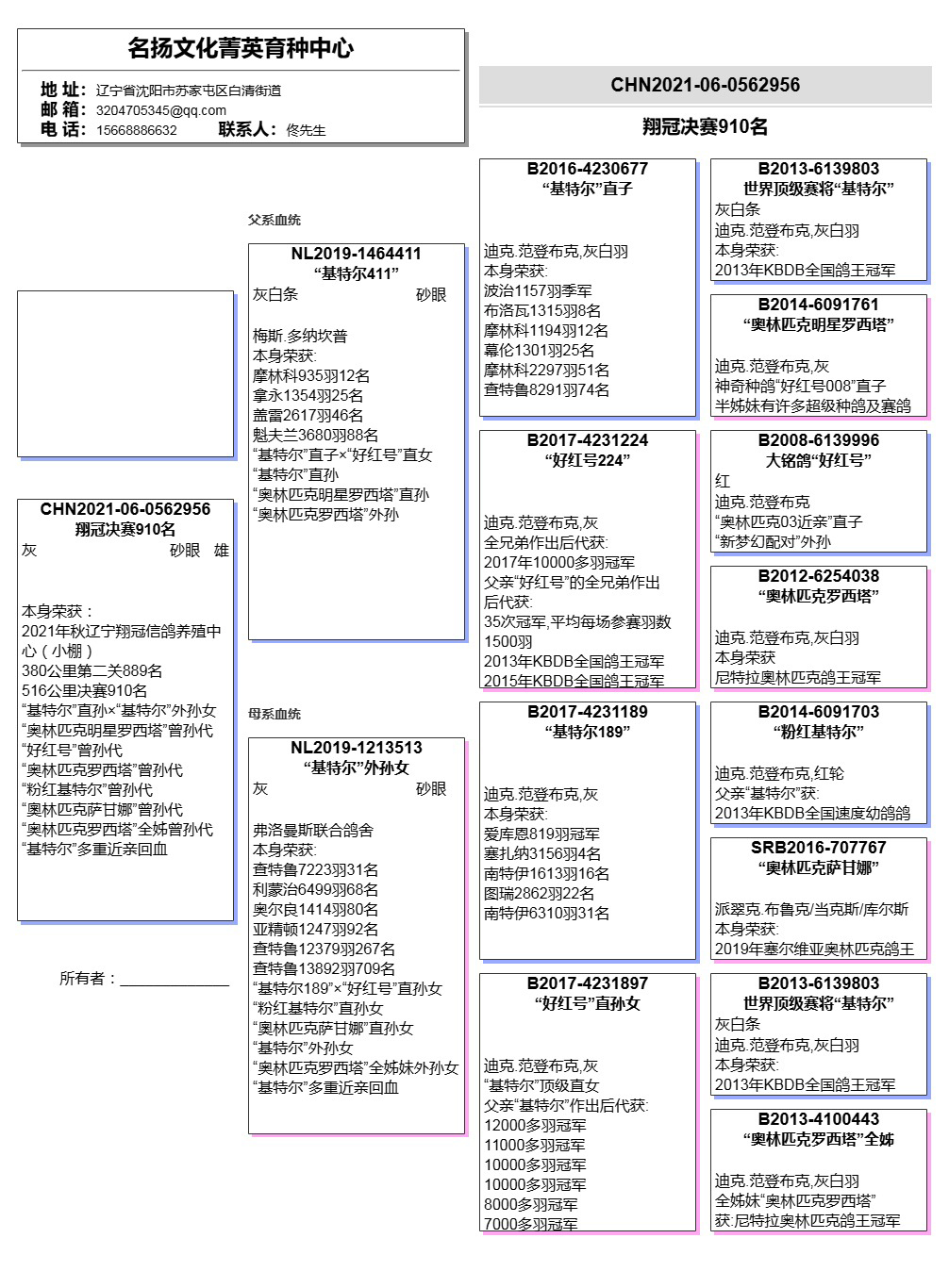 所有拍卖鸽全部血统真实!!个人鉴鸽观点不一,飞不飞天上见.血统成绩第一