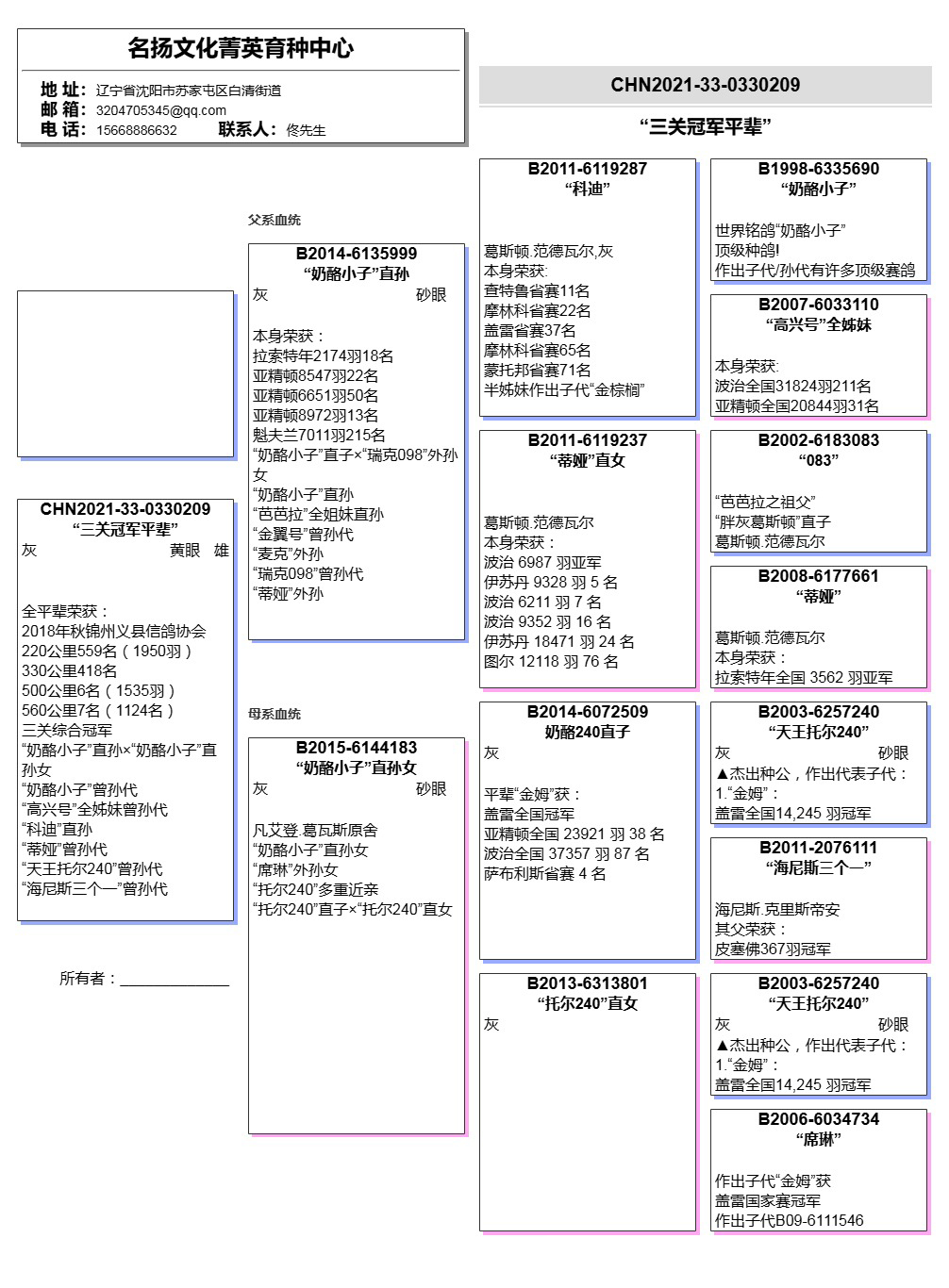 所有拍卖鸽全部血统真实!!个人鉴鸽观点不一,飞不飞天上见.血统成绩第一