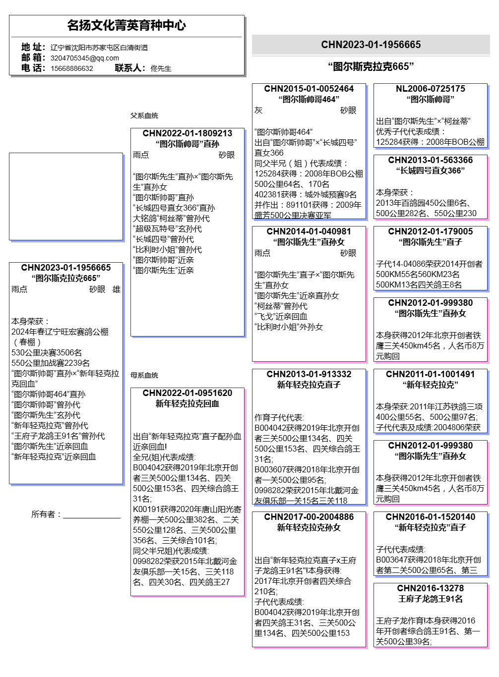 所有拍卖鸽全部血统真实!!个人鉴鸽观点不一,飞不飞天上见.血统成绩第一