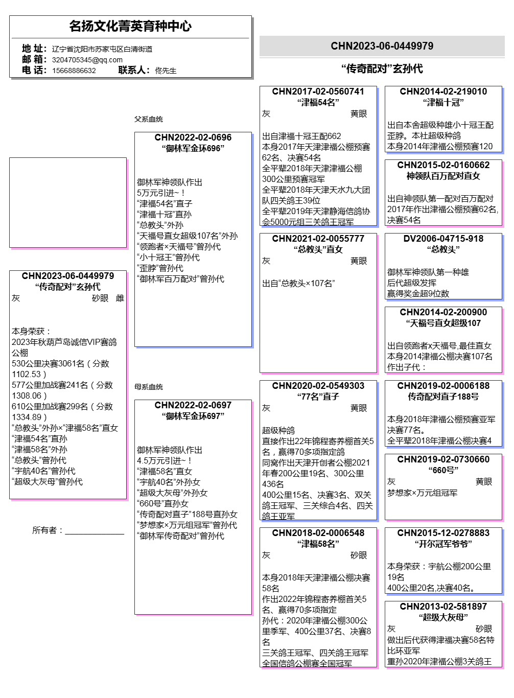 所有拍卖鸽全部血统真实!!个人鉴鸽观点不一,飞不飞天上见.血统成绩第一