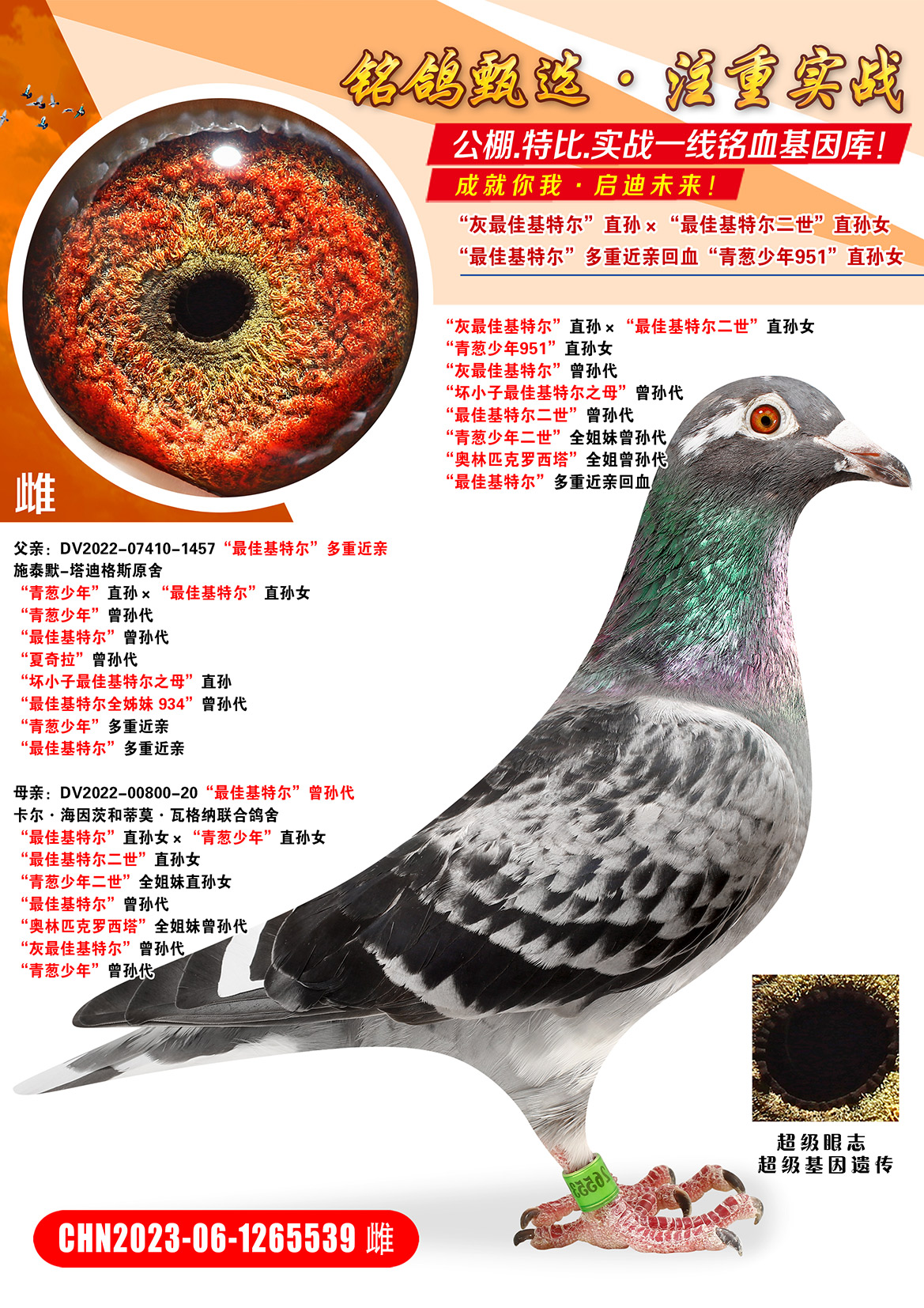 所有拍卖鸽全部血统真实!!个人鉴鸽观点不一,飞不飞天上见.血统成绩第一