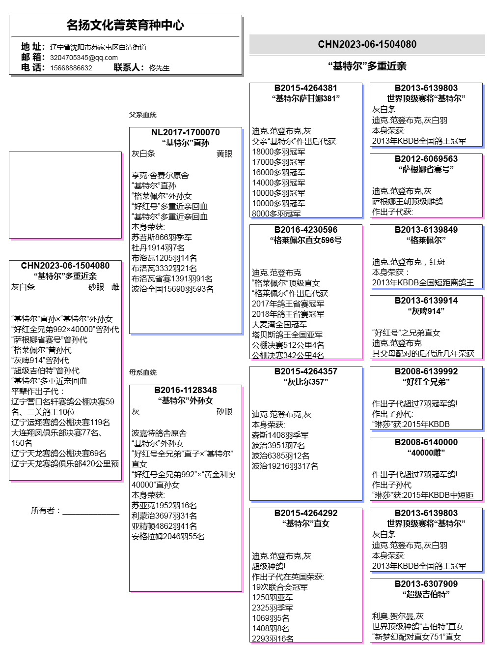 所有拍卖鸽全部血统真实!!个人鉴鸽观点不一,飞不飞天上见.血统成绩第一
