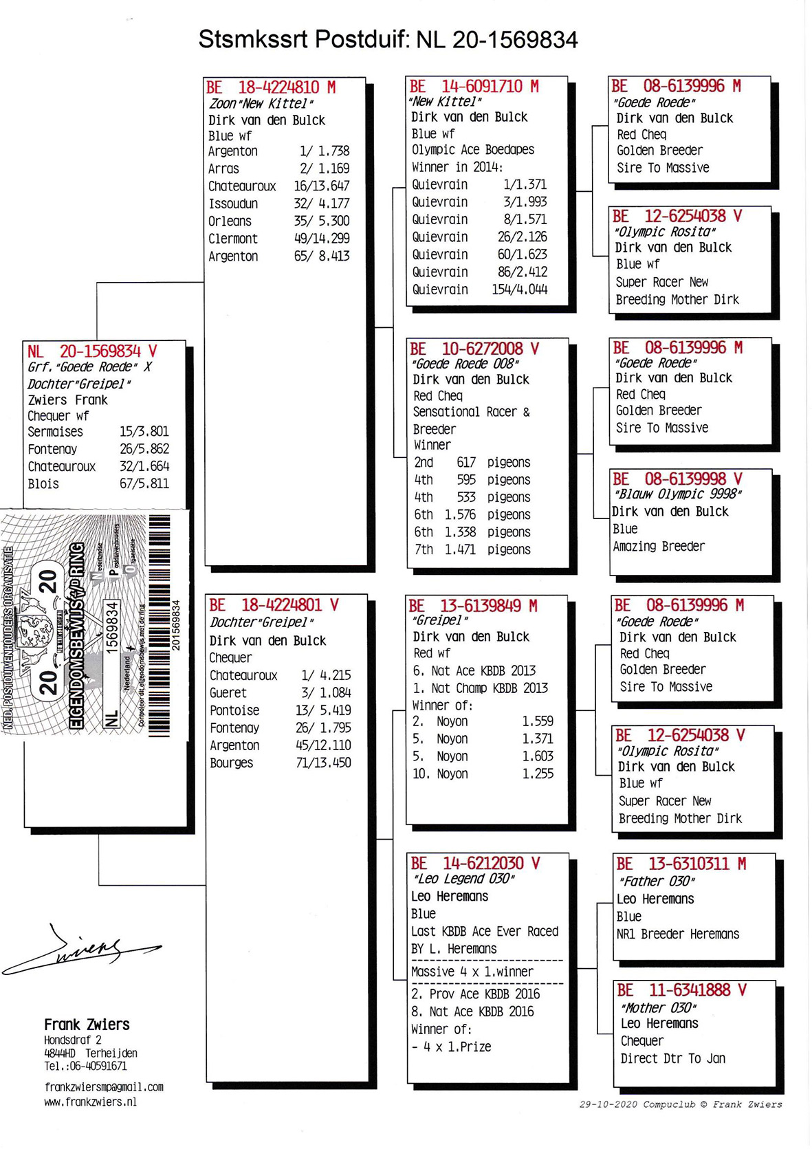 所有拍卖鸽全部血统真实!!个人鉴鸽观点不一,飞不飞天上见.血统成绩第一
