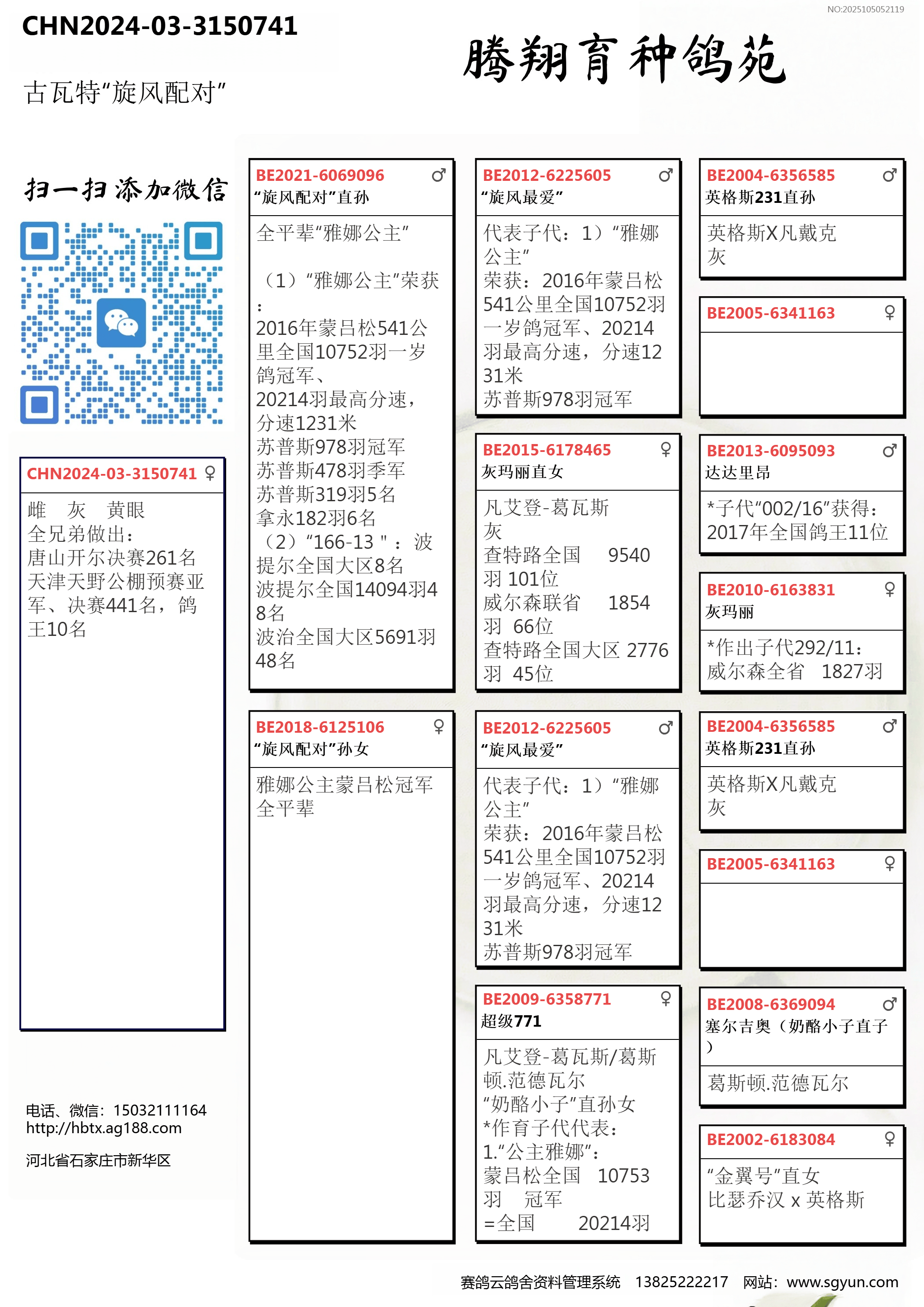 - 当前查看拍卖鸽:古瓦特“旋风配对”直孙X“旋风配对”直孙