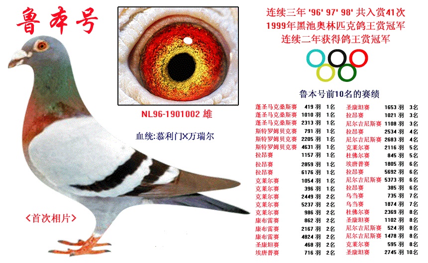 祖父:NL96-1901002 大銘鴿“魯本號”