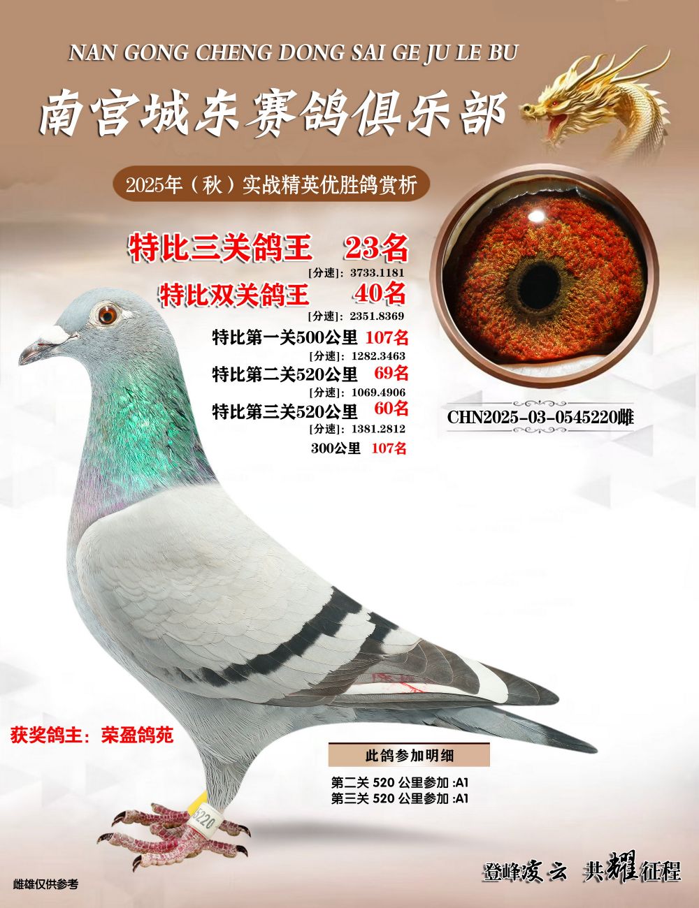 | 1625776 | 南宫城东三关鸽王6名 | ¥300元 | 0次 |