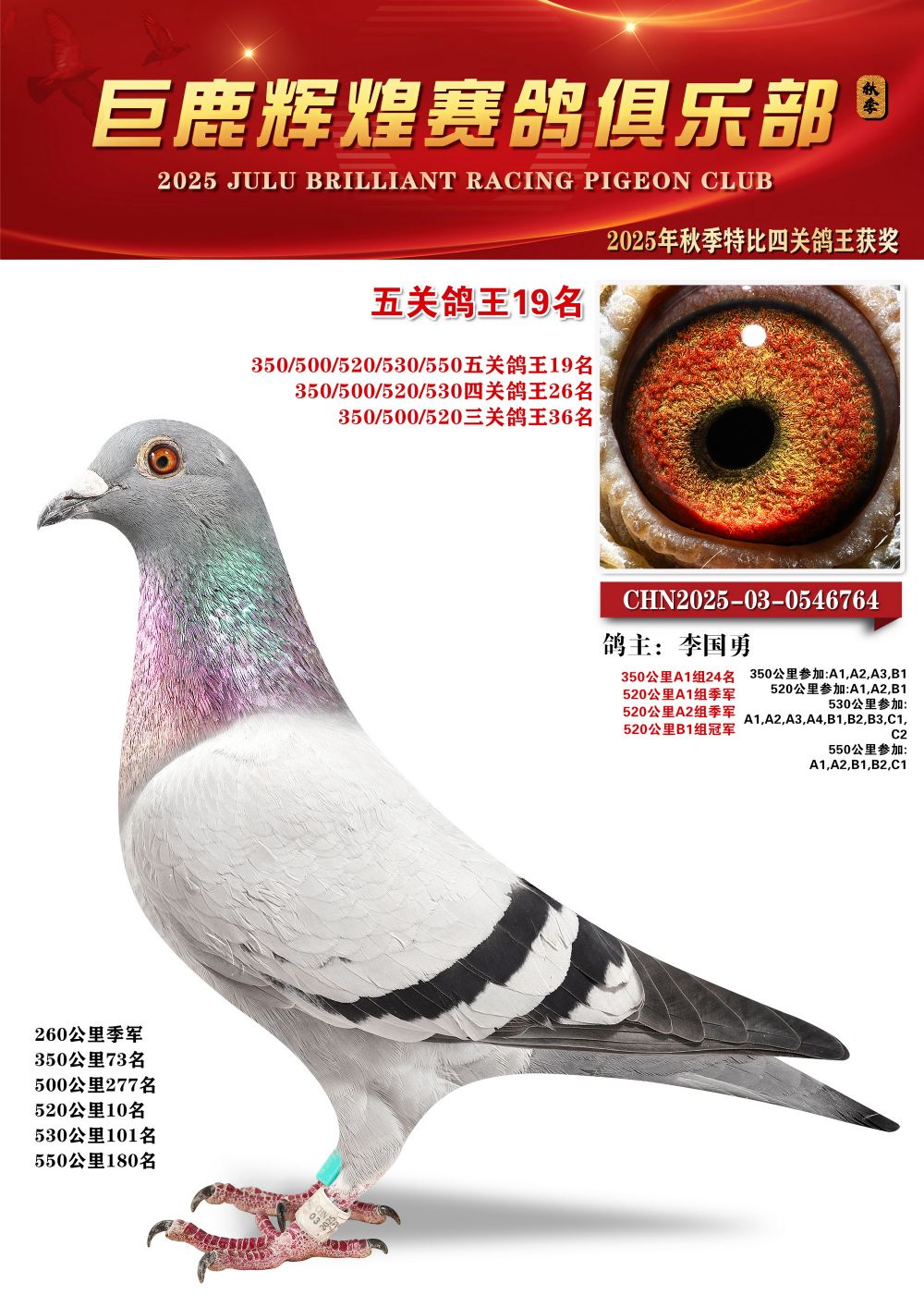 | 1625857 | 巨鹿辉煌五关鸽王亚军 | ¥200元 | 1次 |