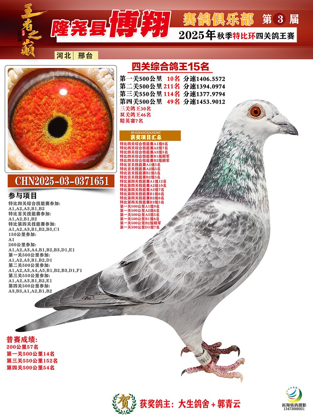 博翔特比四关鸽王15名