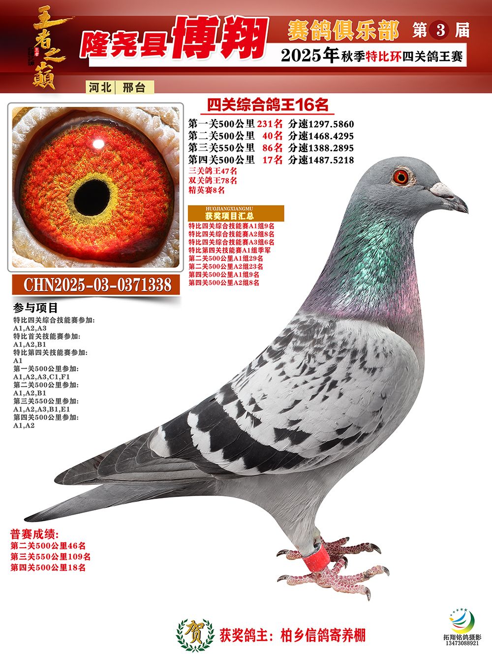 | 1626275 | 博翔特比四关鸽王57名 | ¥200元 | 0次 |