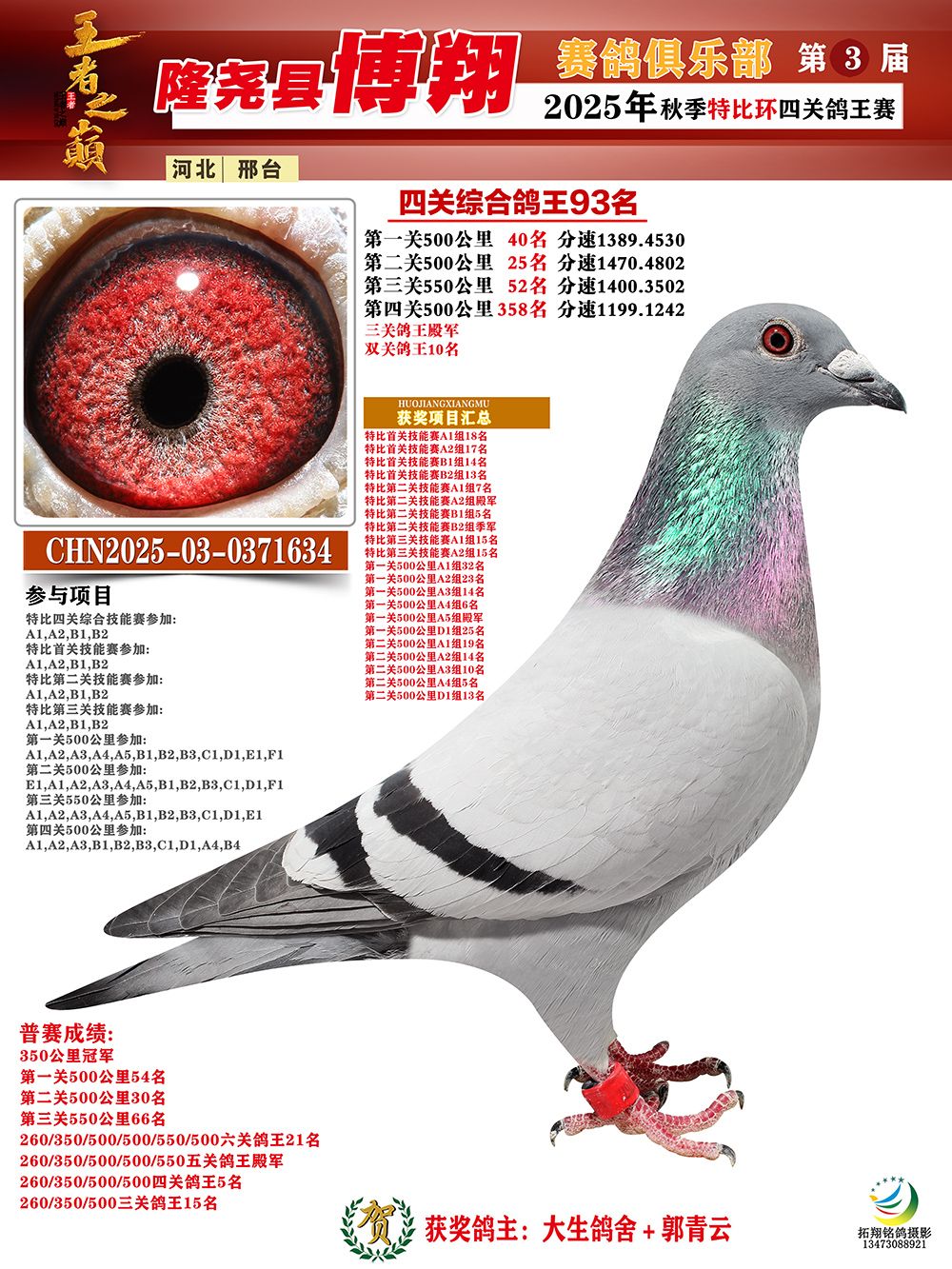 | 1626311 | 博翔特比四关鸽王95名 | ¥200元 | 0次 |