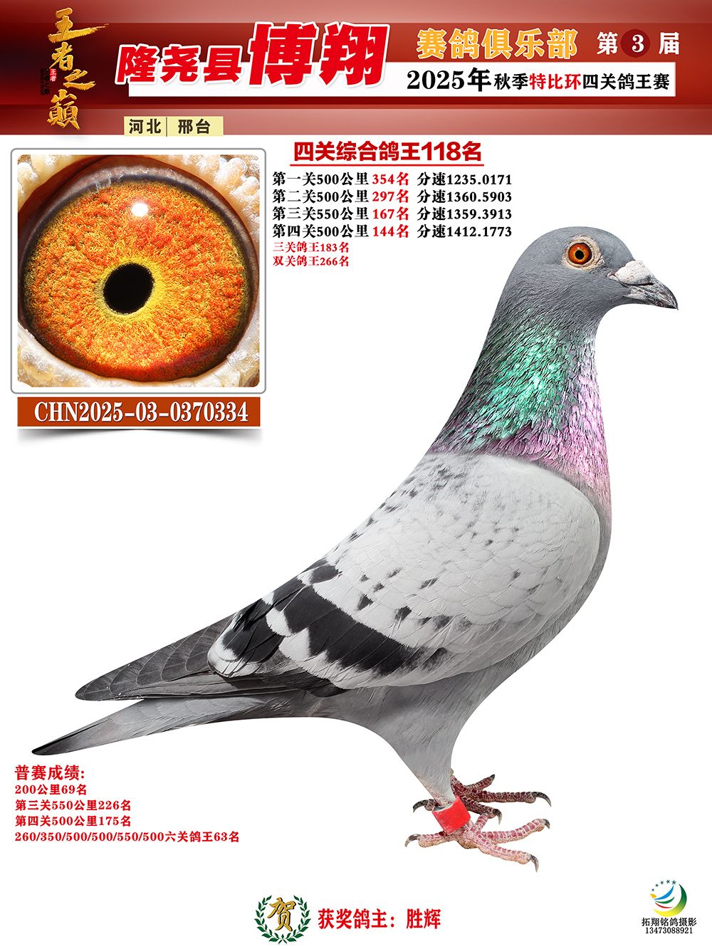 博翔特比四关鸽王118名
