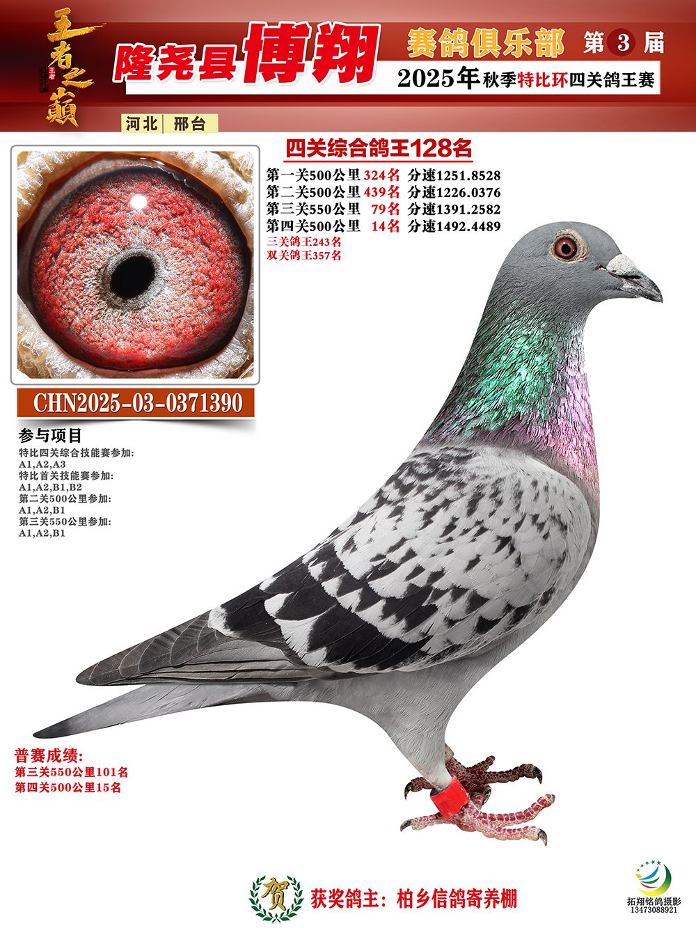 | 1626340 | 博翔特比四关鸽王125名 | ¥200元 | 1次 |