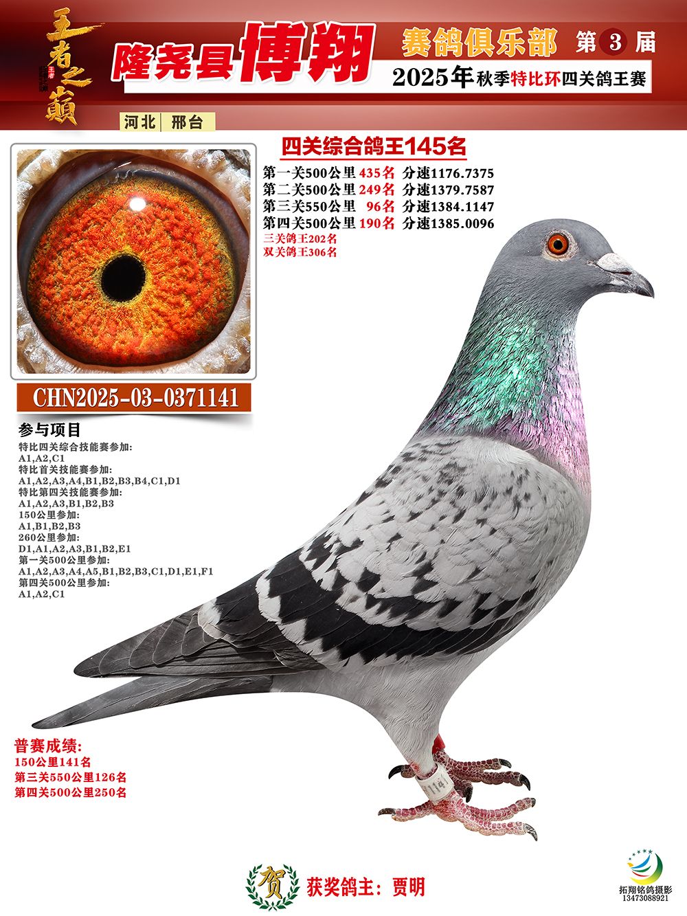 | 1626340 | 博翔特比四关鸽王125名 | ¥200元 | 1次 |