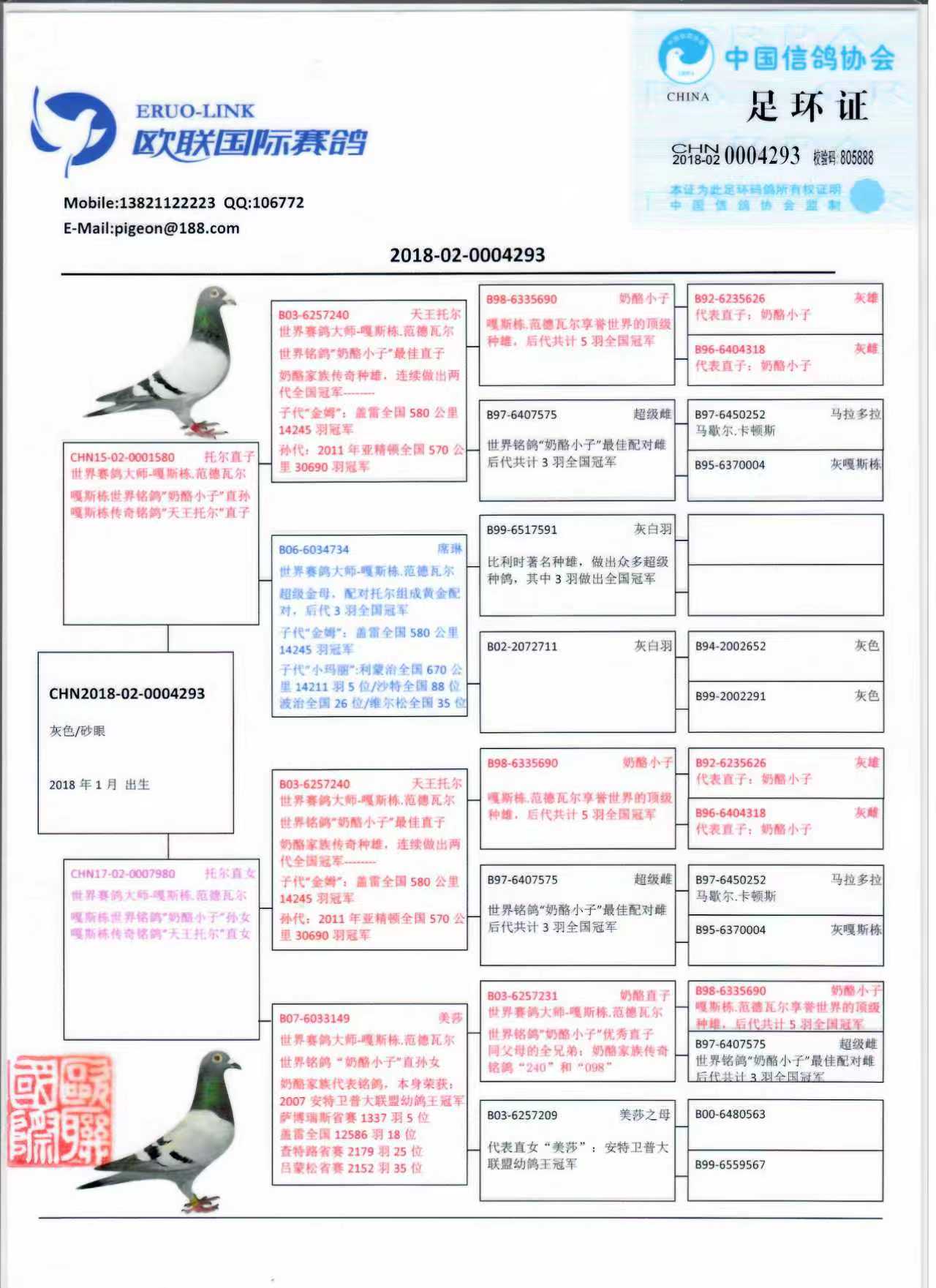 - 当前查看拍卖鸽:欧联:奶酪240近亲回血293,超近种鸽