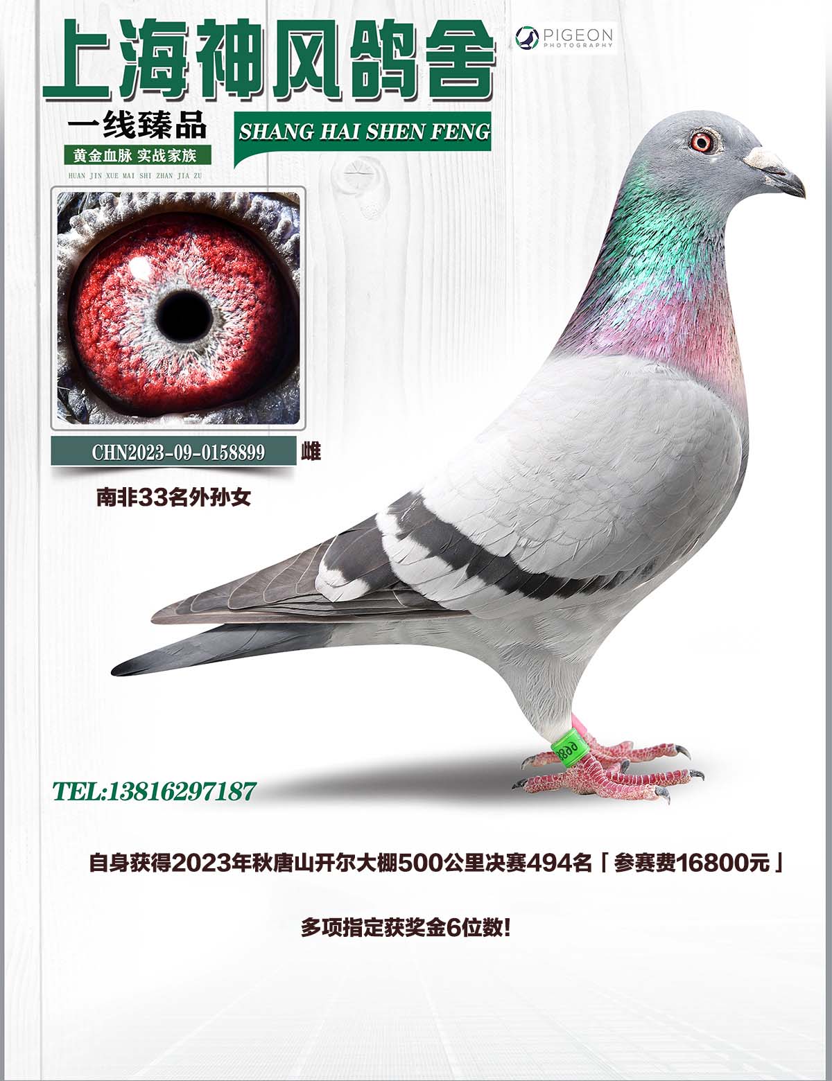 本身获得2017春南非百万美金公棚决赛16名,鸽王22名!