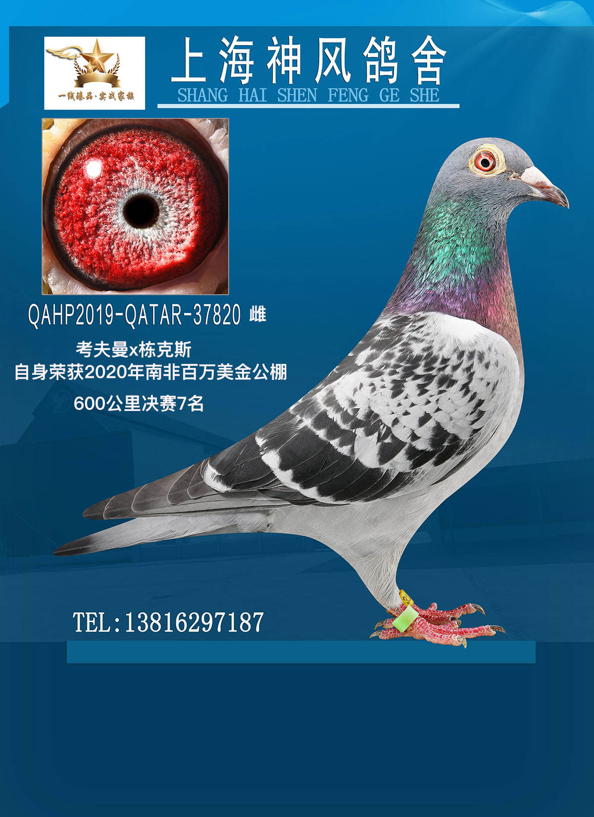 2019年罗马尼亚大奖赛超长距离鸽王冠军(“新荣耀号”双重曾孙代/克特里涅斯柯)