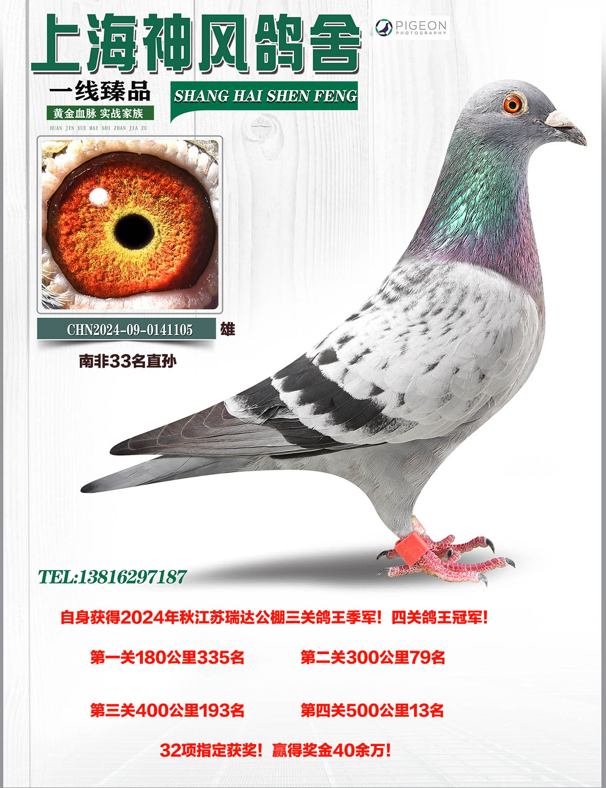 自身获得2024年江苏瑞达公棚三关鸽王季军!四关鸽王冠军!