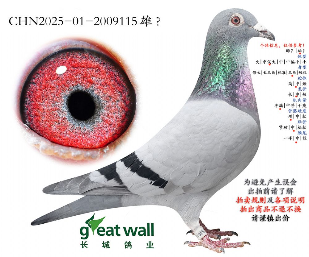 因拍卖鸽均是未做育过的种鸽或幼鸽,图内所标雌雄仅供参考,实际性别已实物为准。
