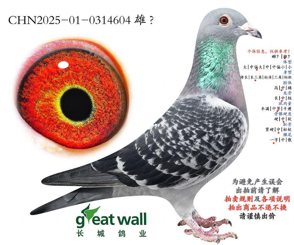 因拍卖鸽均是未做育过的种鸽或幼鸽,图内所标雌雄仅供参考,实际性别已实物为准。