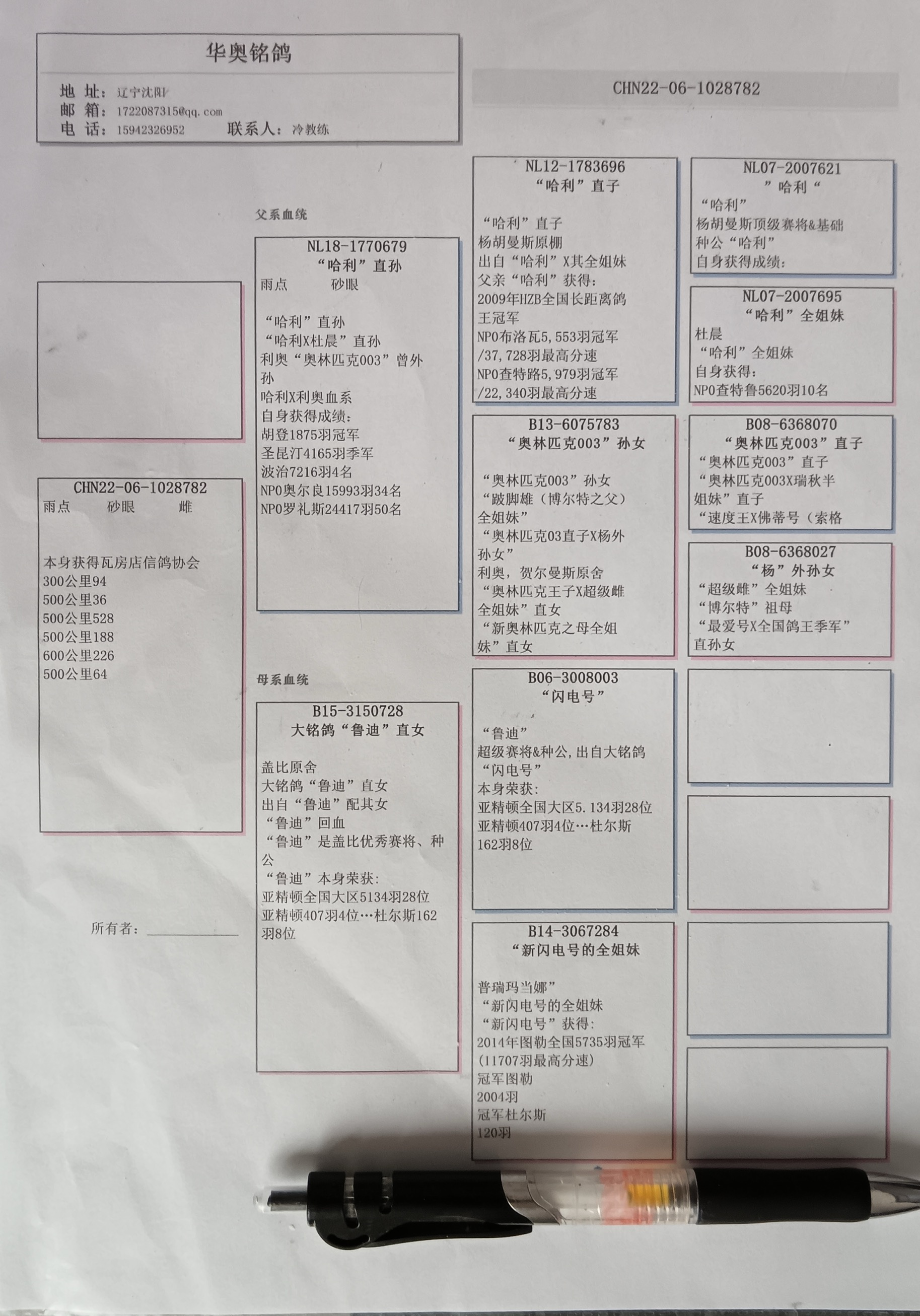 鸽主:华奥铭鸽