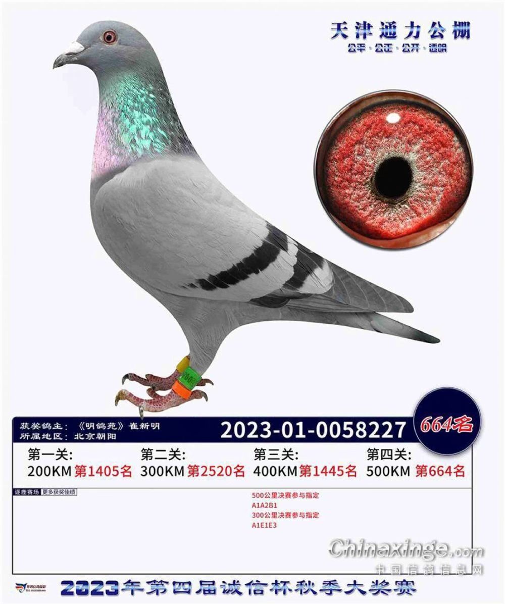 天津通力赛鸽公棚500公里决赛66名;参与指定:700元;