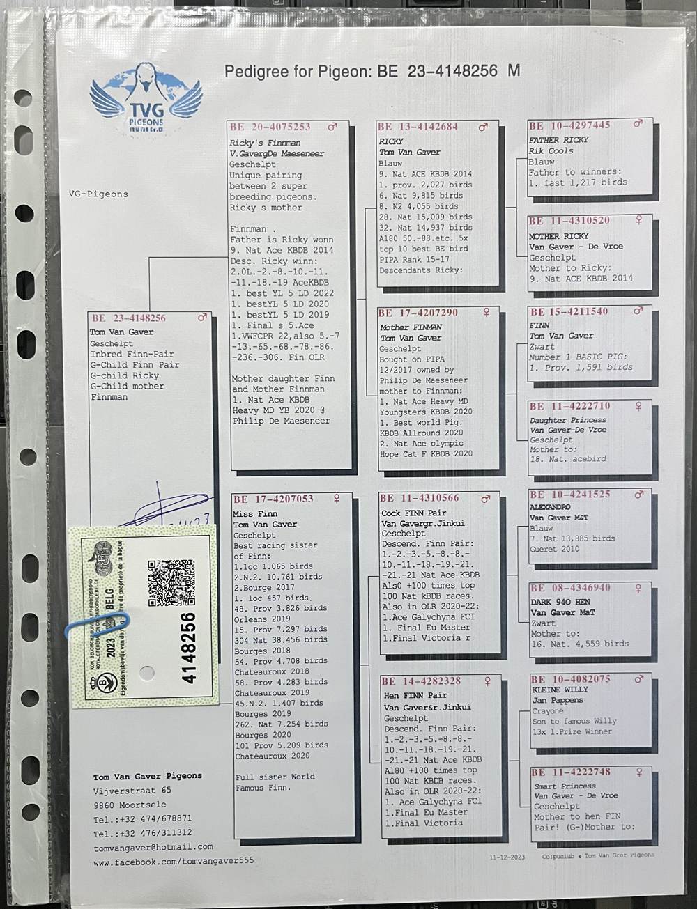 母:BE17-4207053 费恩小姐 汤姆.凡哈佛 铭鸽“费恩”的最佳赛将;