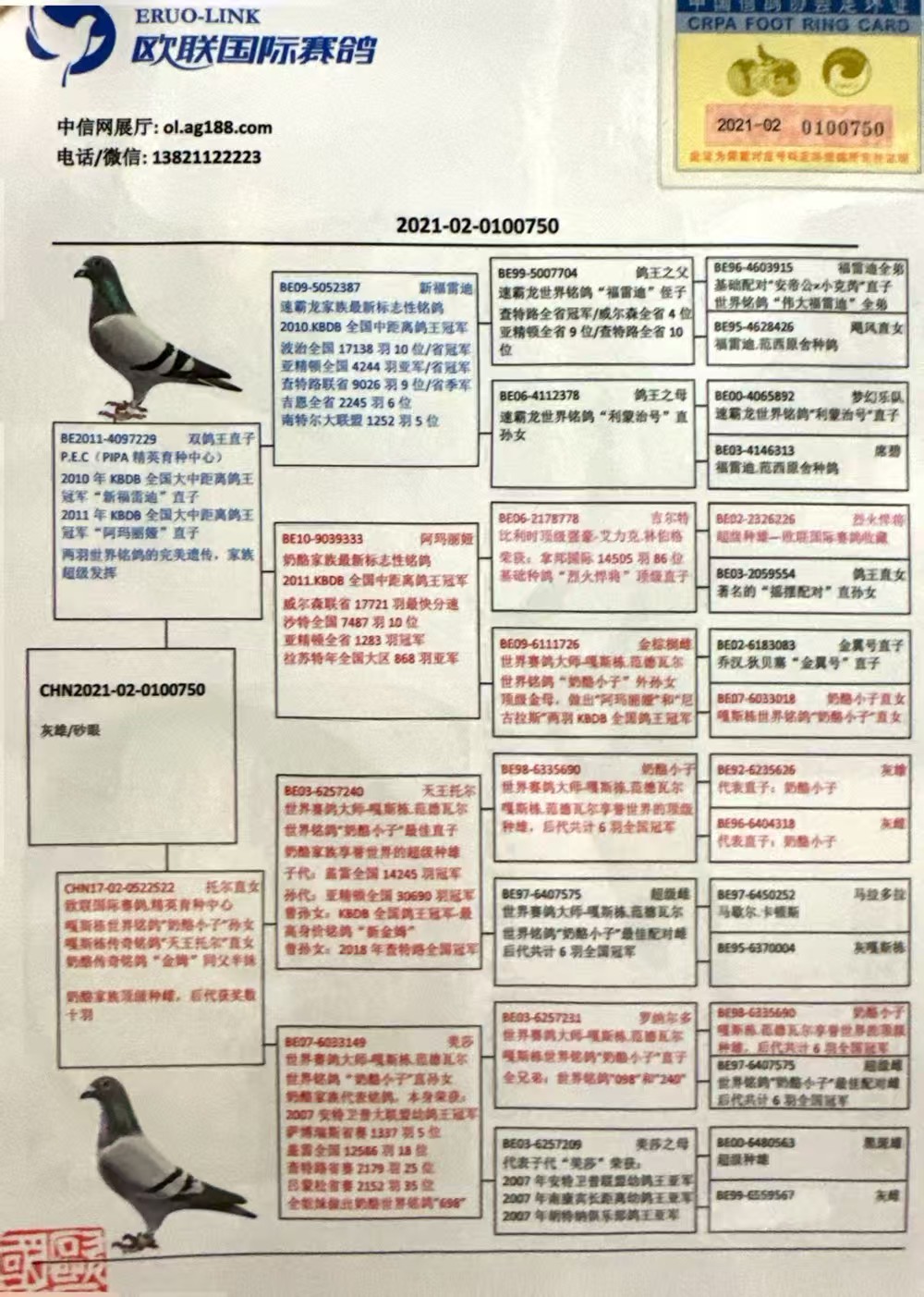 注明:5年以上的老鸽子更换环境有可能造成不能作育,请你谨慎出价