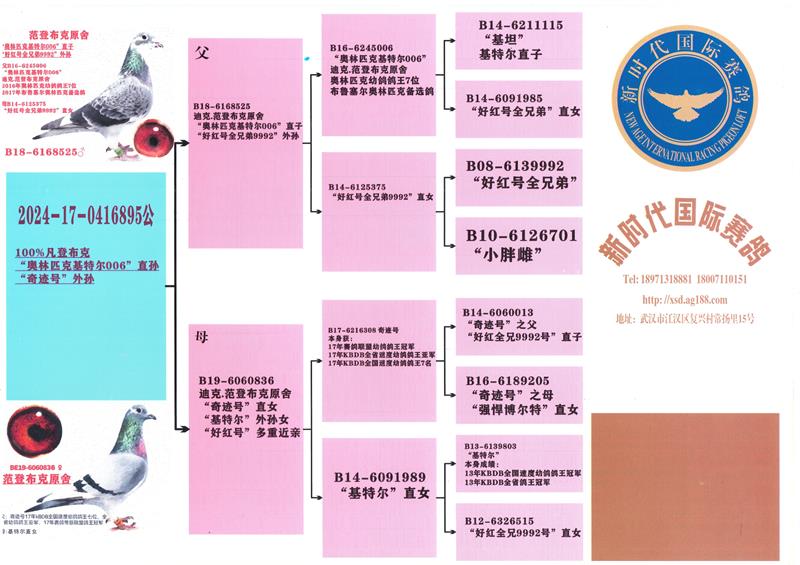 | 1628826 | 乔斯乔森-“马赛922公里10443羽国际总冠军”多重近亲 | ¥0元 | 0次 |
