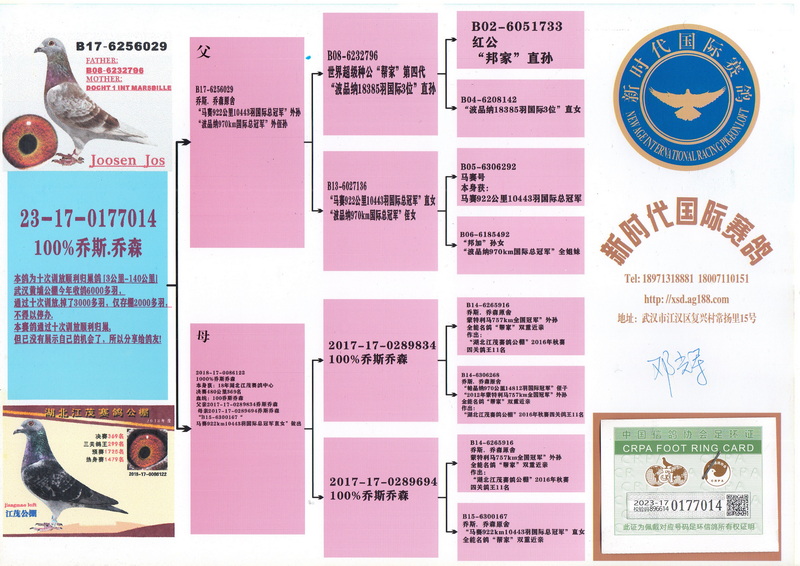 “马赛922公里10443羽国际总冠军”多重近亲