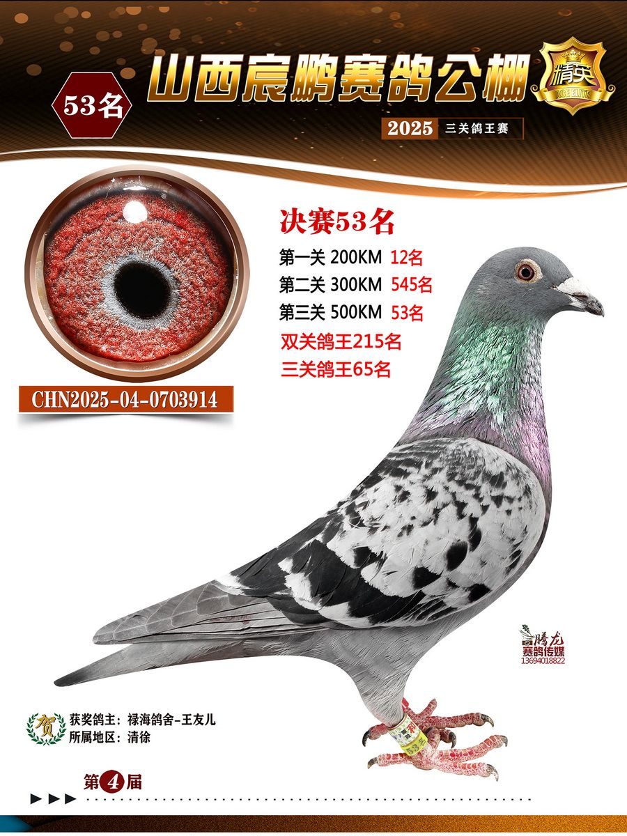 | 1628943 | 山西宸鹏决赛58名(三关鸽王季军)(双关鸽王9名) | ¥500元 | 2次 |