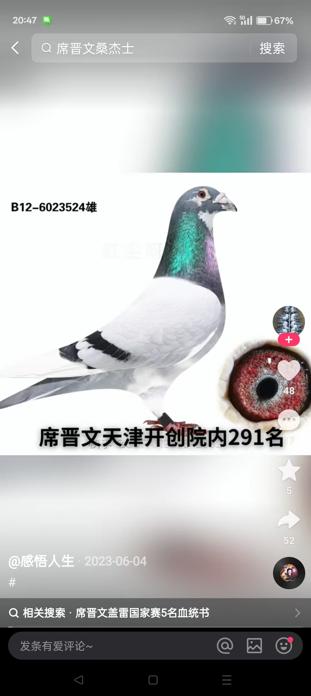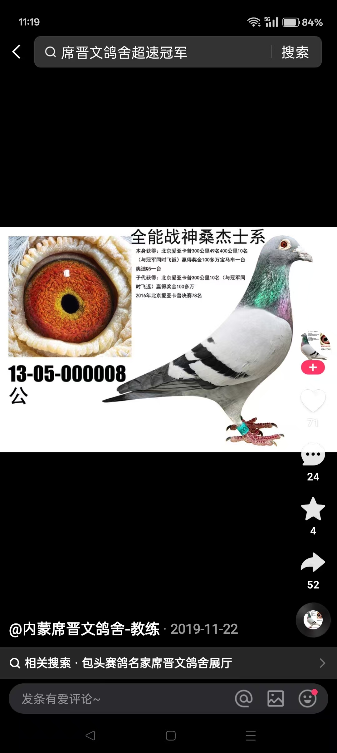 - 当前查看拍卖鸽:席晋文做出包头千元特比鸽王61名盖雷5X