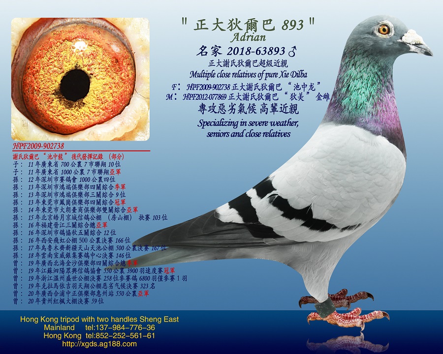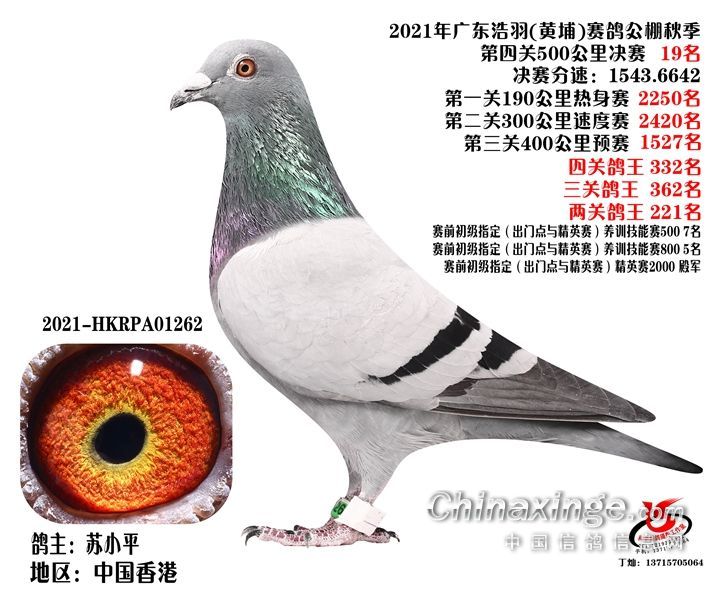 曾:19年江蘇泗陽眾興信鴿協會550公裏3900羽速度賽冠軍