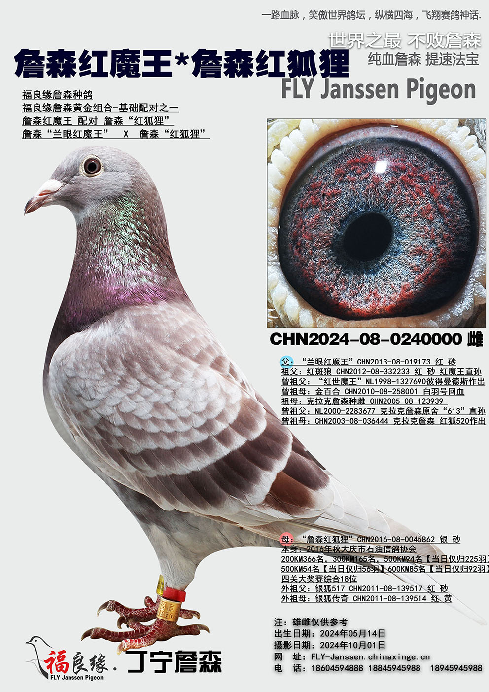 | 1629960 | 詹森鸽王双亚军/奶酪9名 | ¥1000元 | 0次 |