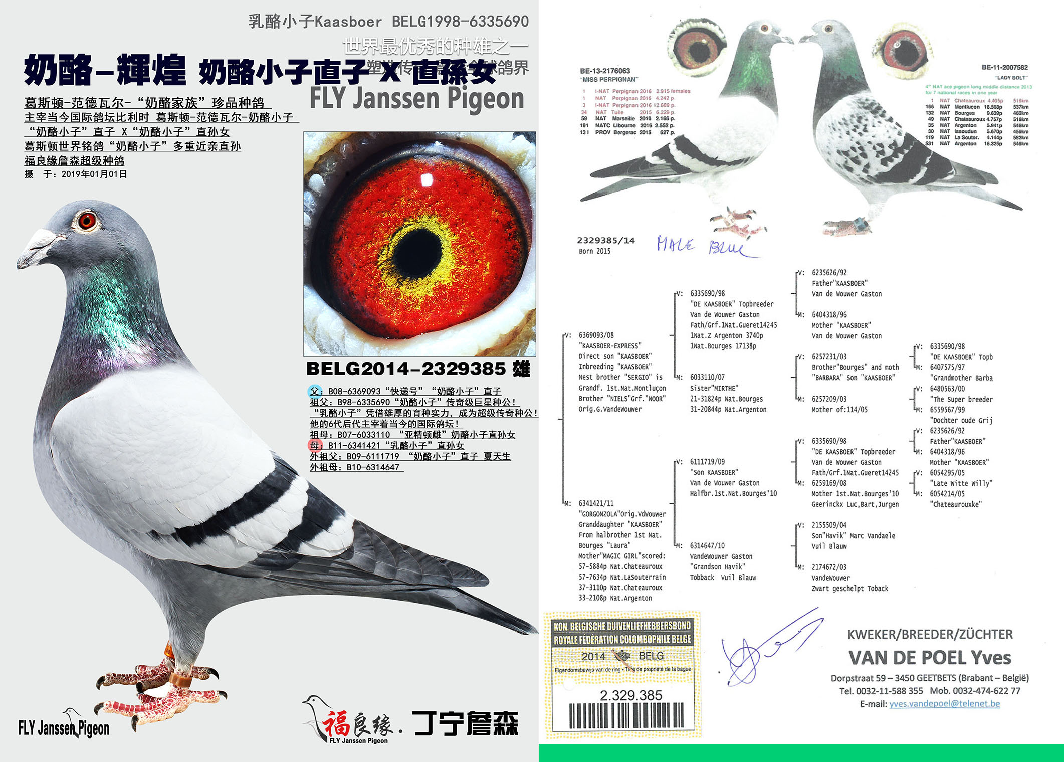 葛斯顿招牌铭鸽“698号”同窝 “奶酪小子”顶尖直女