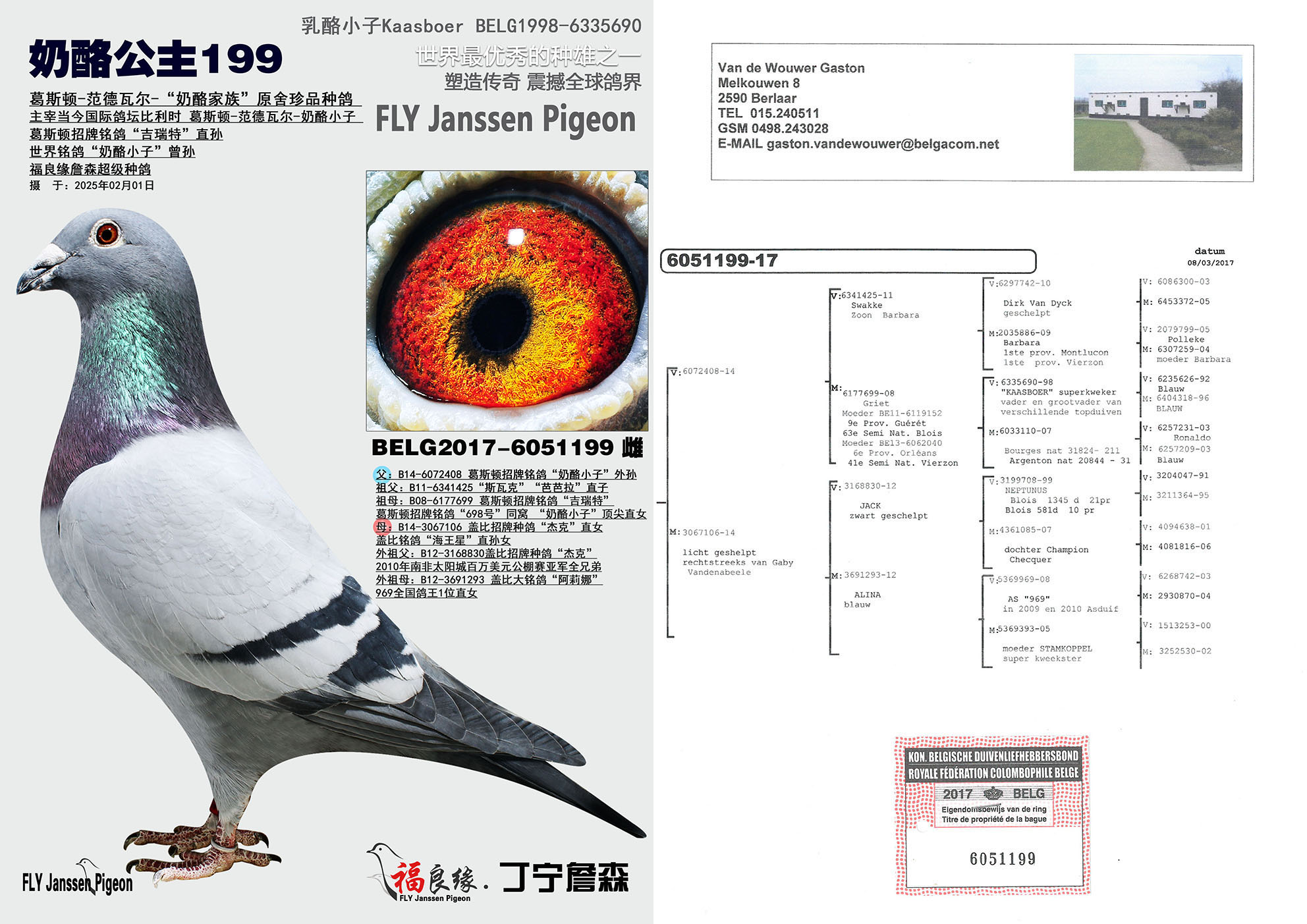 曾外祖母:B08-6177699 葛斯顿招牌铭鸽“吉瑞特”
