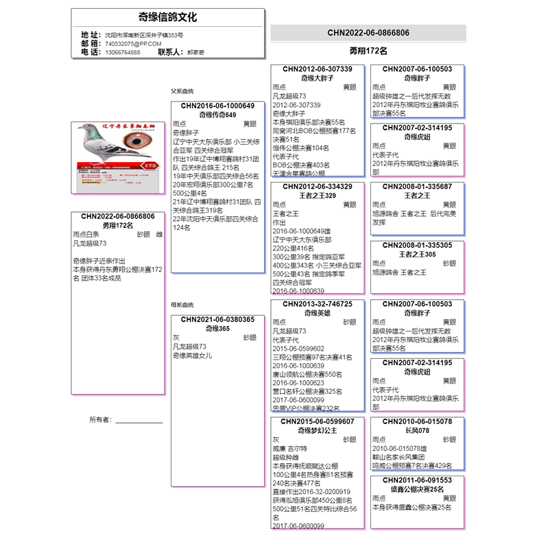 8、注明:本身有鸽会和公棚成绩的,是按着鸽主的记录和用网络查询为依据,没有奖状证书,仅供参考。