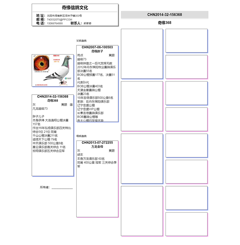 8、注明:本身有鸽会和公棚成绩的,是按着鸽主的记录和用网络查询为依据,没有奖状证书,仅供参考。