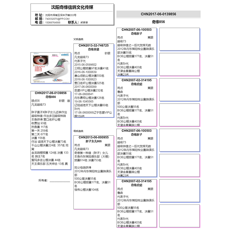 8、注明:本身有鸽会和公棚成绩的,是按着鸽主的记录和用网络查询为依据,没有奖状证书,仅供参考。