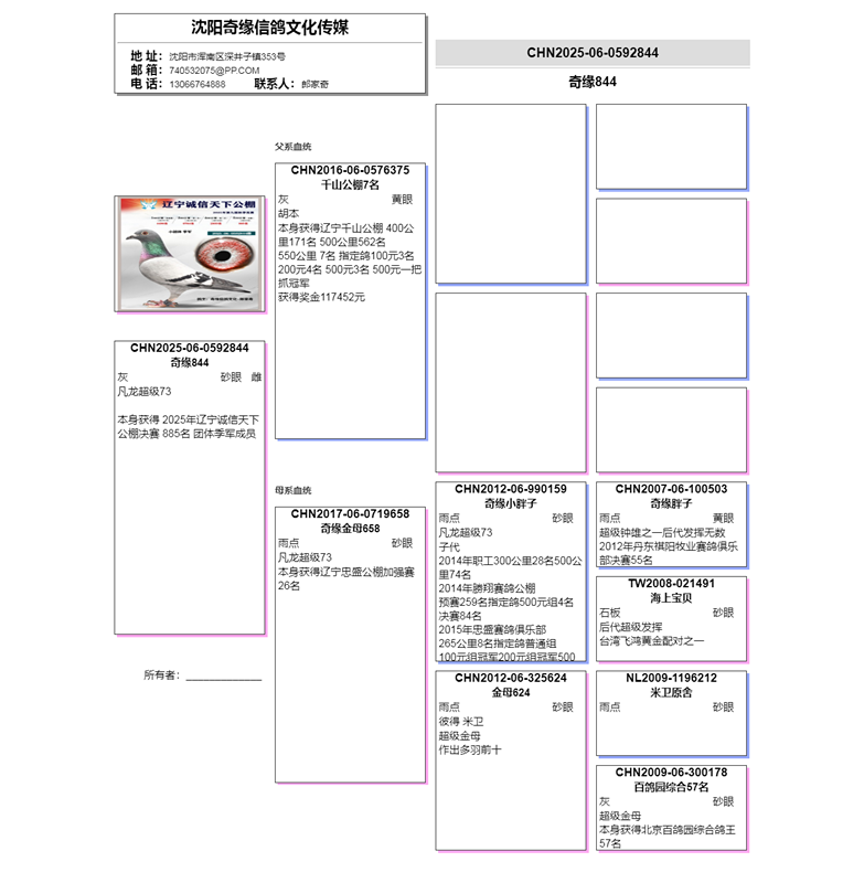 3、注明:请注意看种鸽和血统图片,有的种鸽环卡丢失,有些奖鸽无环卡和奖状和血统,介意请勿出价;